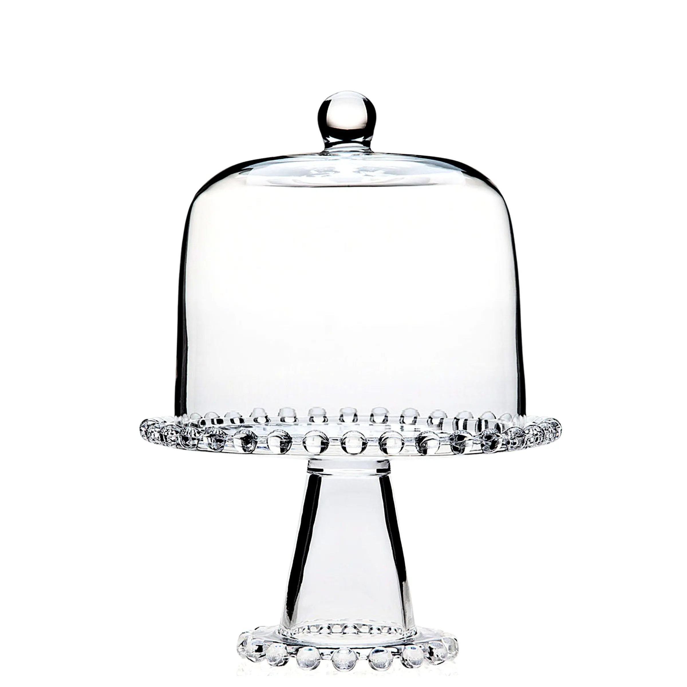 Keep your cakes safe and secure with the Chesterfield Cake Dome! Its classic glass design and beaded edge detailing will help protect the freshness of your cakes while adding a classic, elegant touch to your kitchen. Perfect for any baker.
