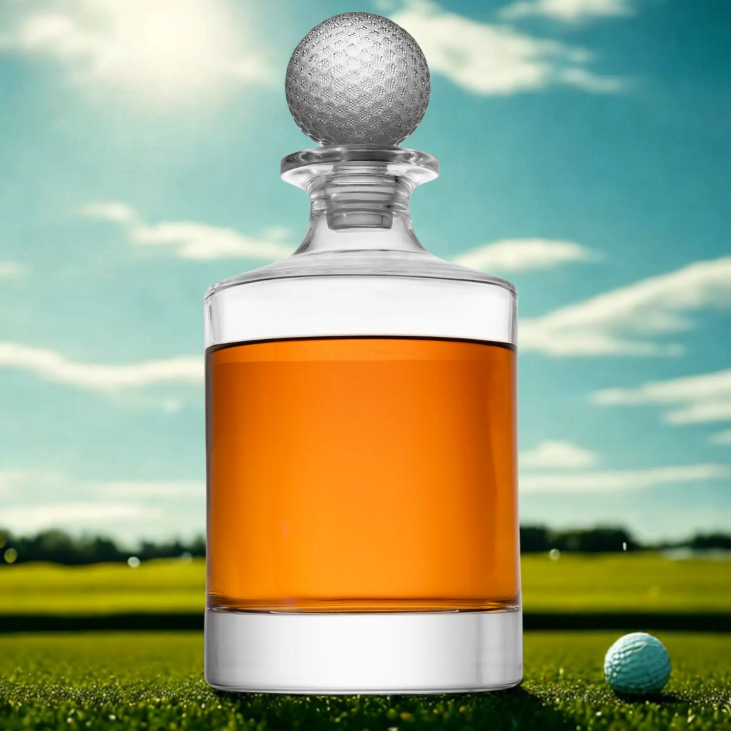 Made from crystal-clear glass, its sleek silhouette showcases your favorite whiskey, bourbon, or scotch with clarity and class. The golf ball stopper adds a playful yet polished finishing touch, making it a hole-in-one gift for golf lovers, dads, or anyone who appreciates a well-crafted pour.