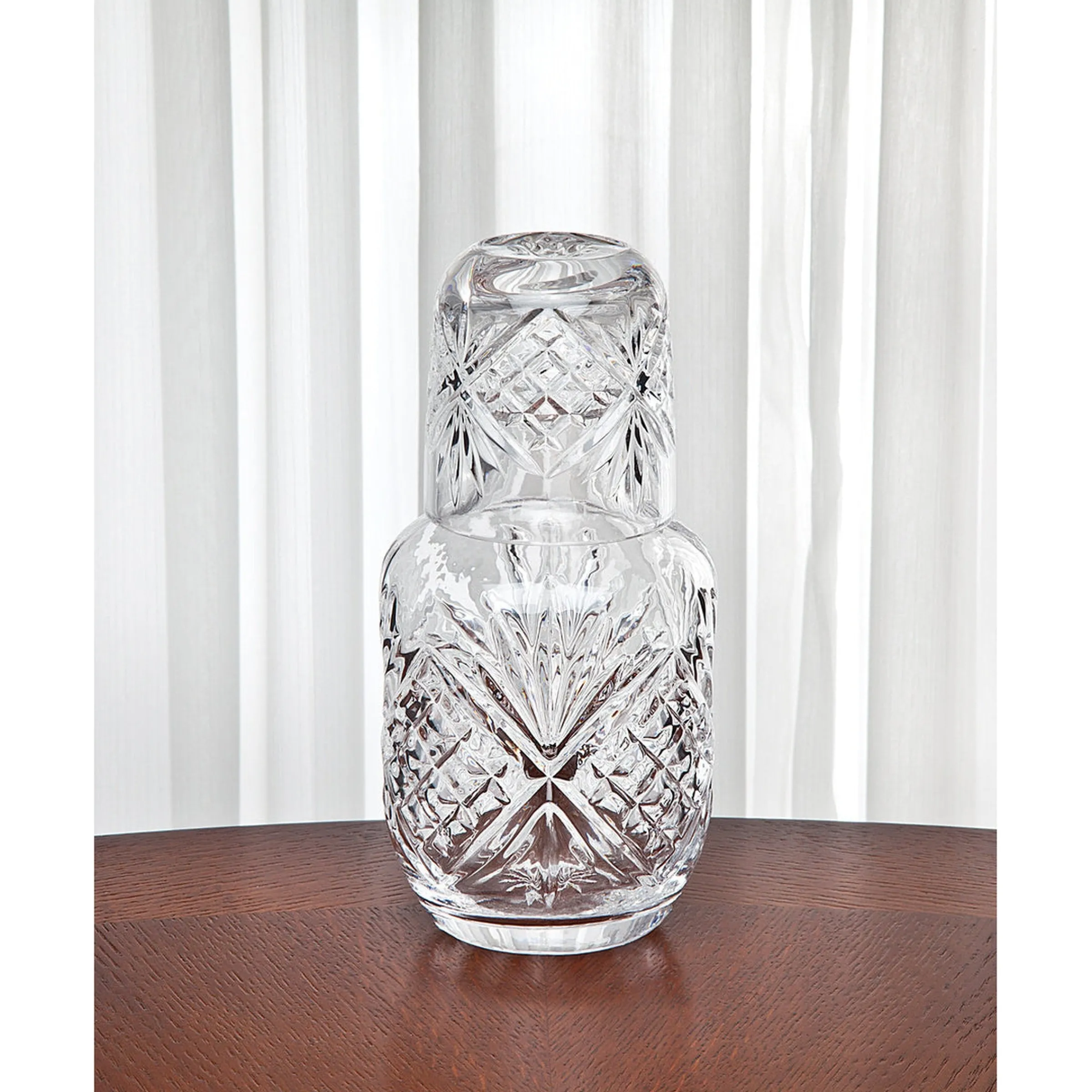 Part of our celebrated Dublin collection, this bedside carafe brings the elegance of traditional crystal-cut glass to your nightstand. Featuring a brilliant-cut pattern and timeless design, it’s both functional and refined—perfect for keeping water close at hand in sophisticated style. A subtle luxury that elevates everyday moments.