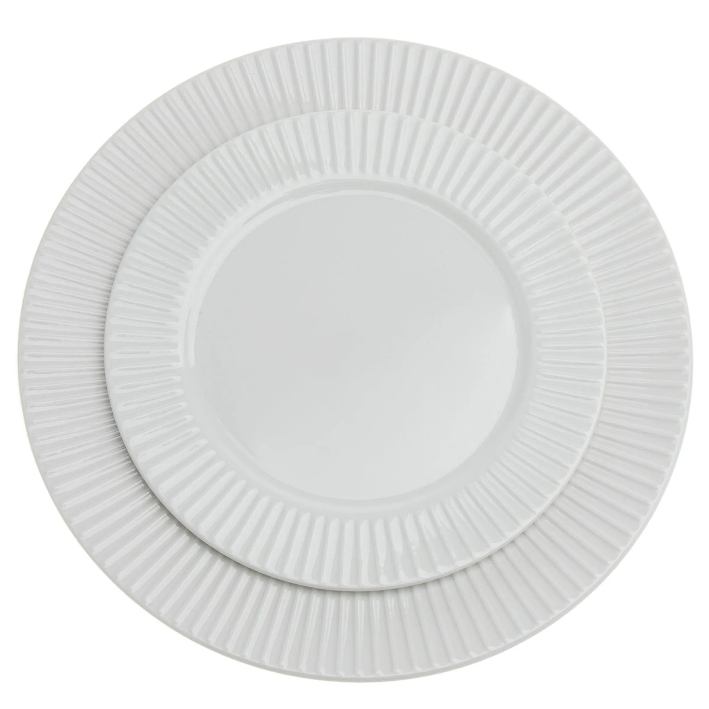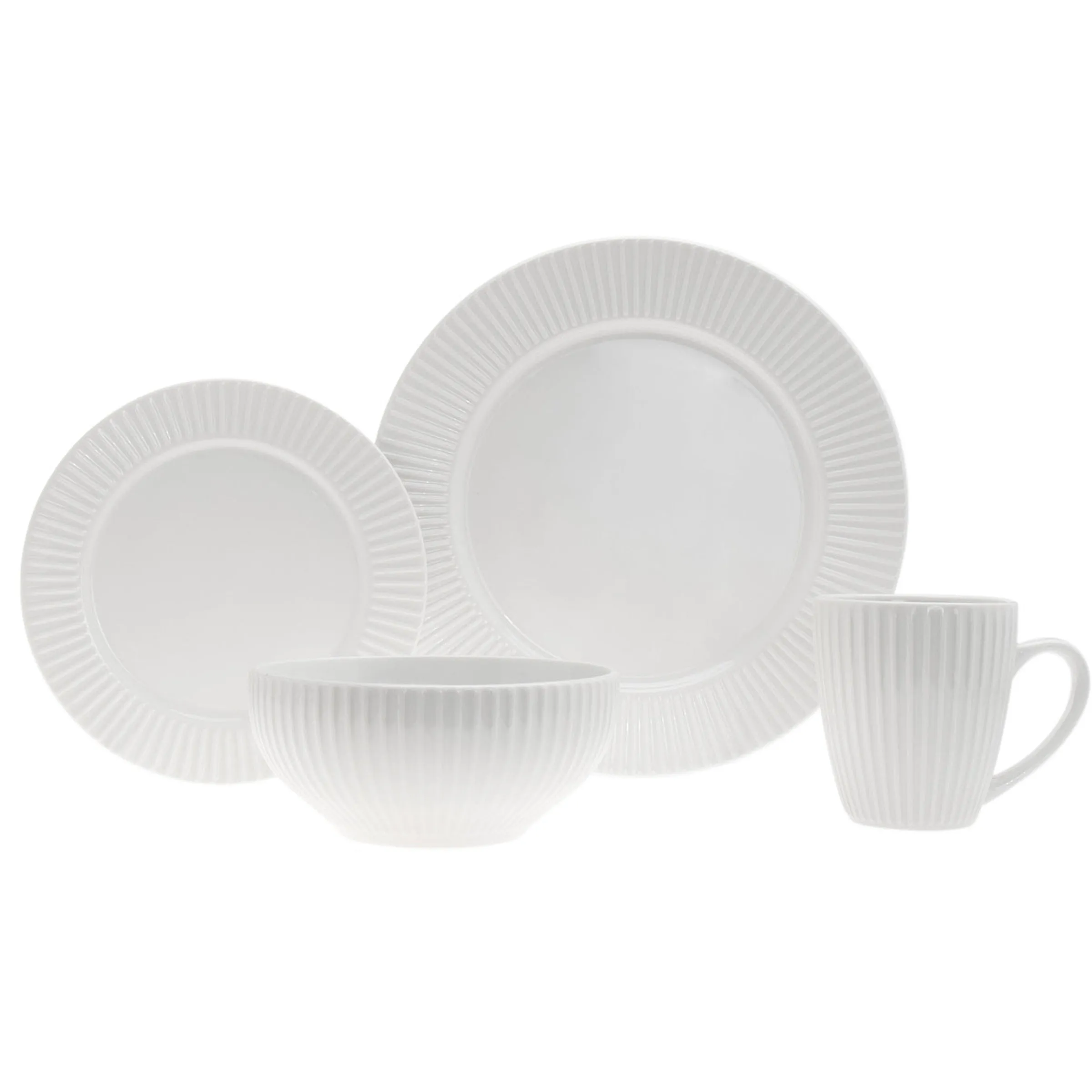 This 16-piece dinnerware set provides a beautiful presentation for your dining experience. With its ribbed edging details and porcelain construction, the Inventure set ensures durability and elegance. Its service for four allows you to entertain in style.