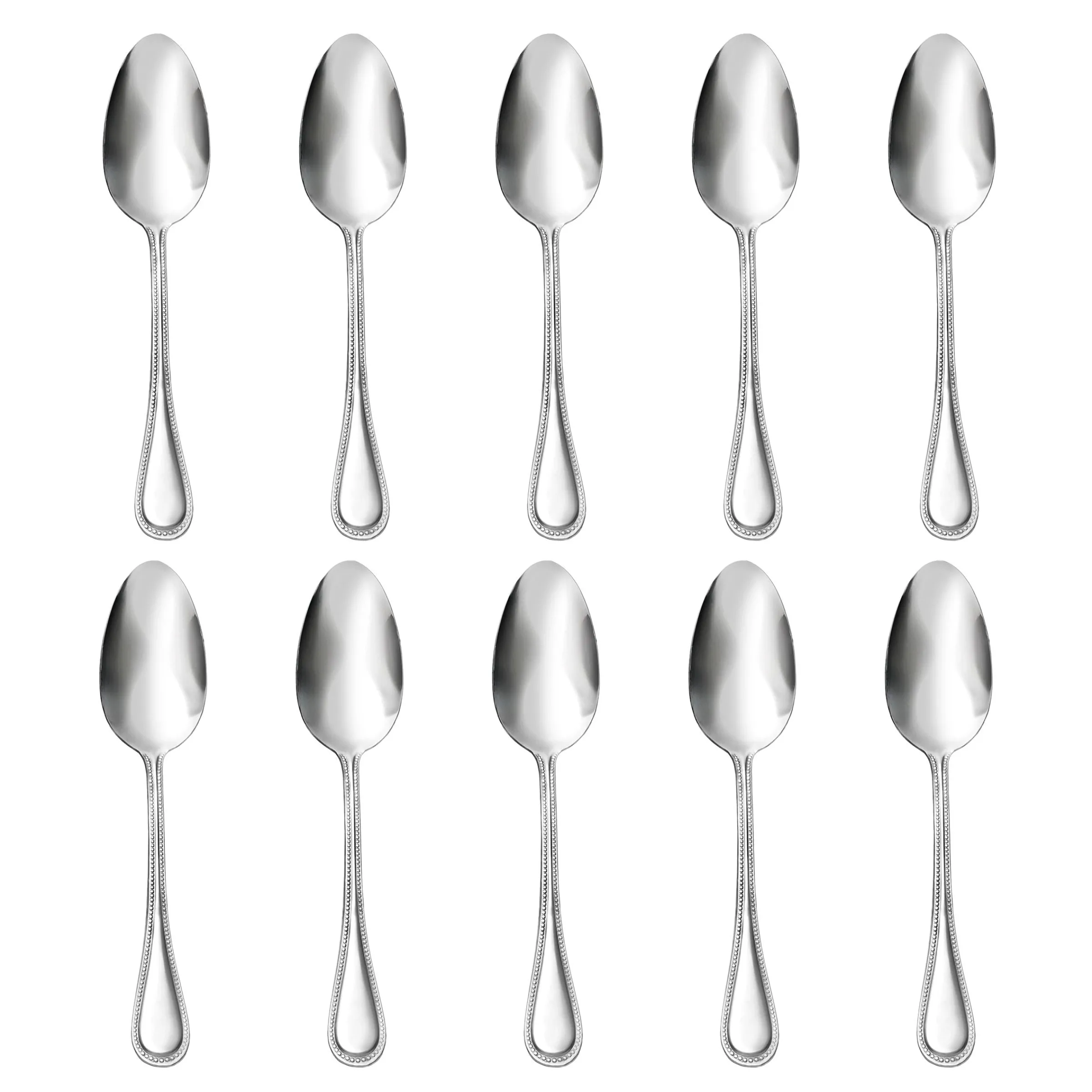 Crafted for everyday durability and timeless elegance, this 10-piece Bead Mirrored 18/0 Stainless Steel Tablespoon Set delivers reliable performance meal after meal. With its classic bead design and polished mirror finish, it’s perfect for everyday dining, entertaining guests, or replacing lost pieces in your existing set.
