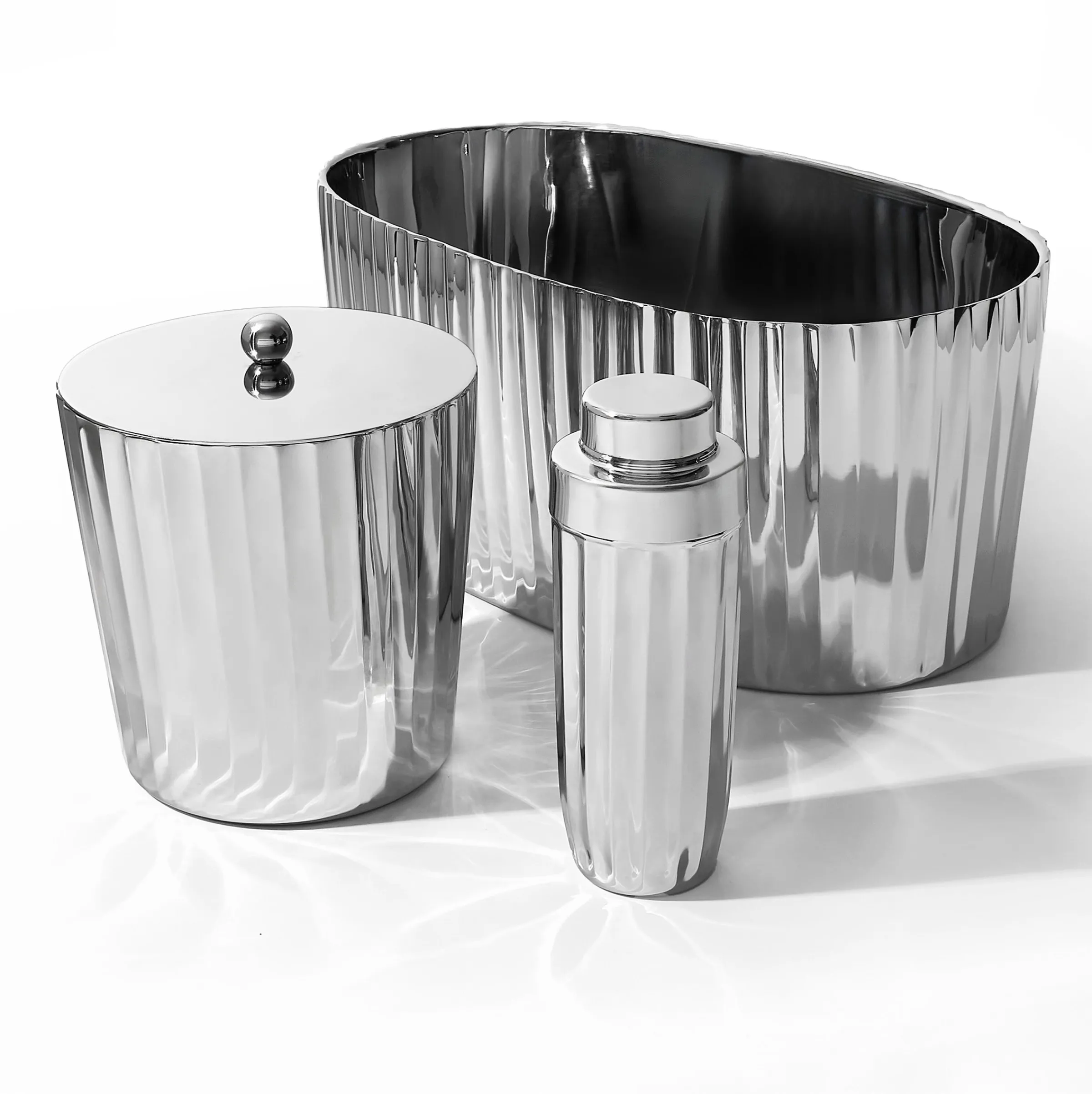 Chill in style with the sleek sophistication of our Waves Ice Bucket. Crafted from double-walled stainless steel to keep ice colder for longer, this elegant bucket features a pleated wave pattern that adds a modern, sculptural touch to your bar or tabletop. Whether you’re hosting a party or enjoying a quiet evening in, it’s the perfect blend of form and function.