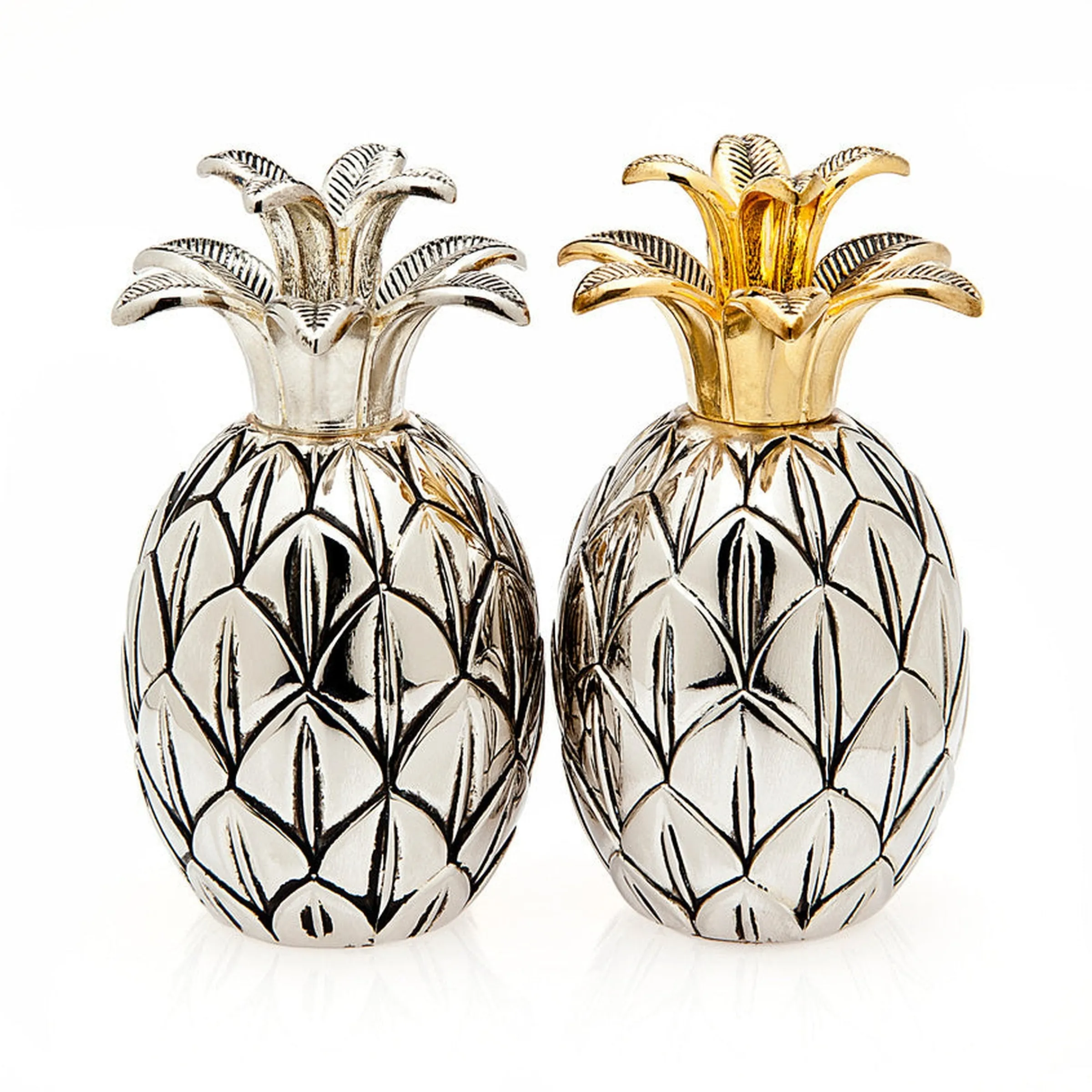 This Pineapple Salt & Pepper Shaker Set is a unique addition to any kitchen. It features two stainless shakers, each crafted to look like a pineapple, and features a stainless-steel top. The shakers are perfect for adding a pinch of seasoning to any dish and creating a fun and festive atmosphere in any home.