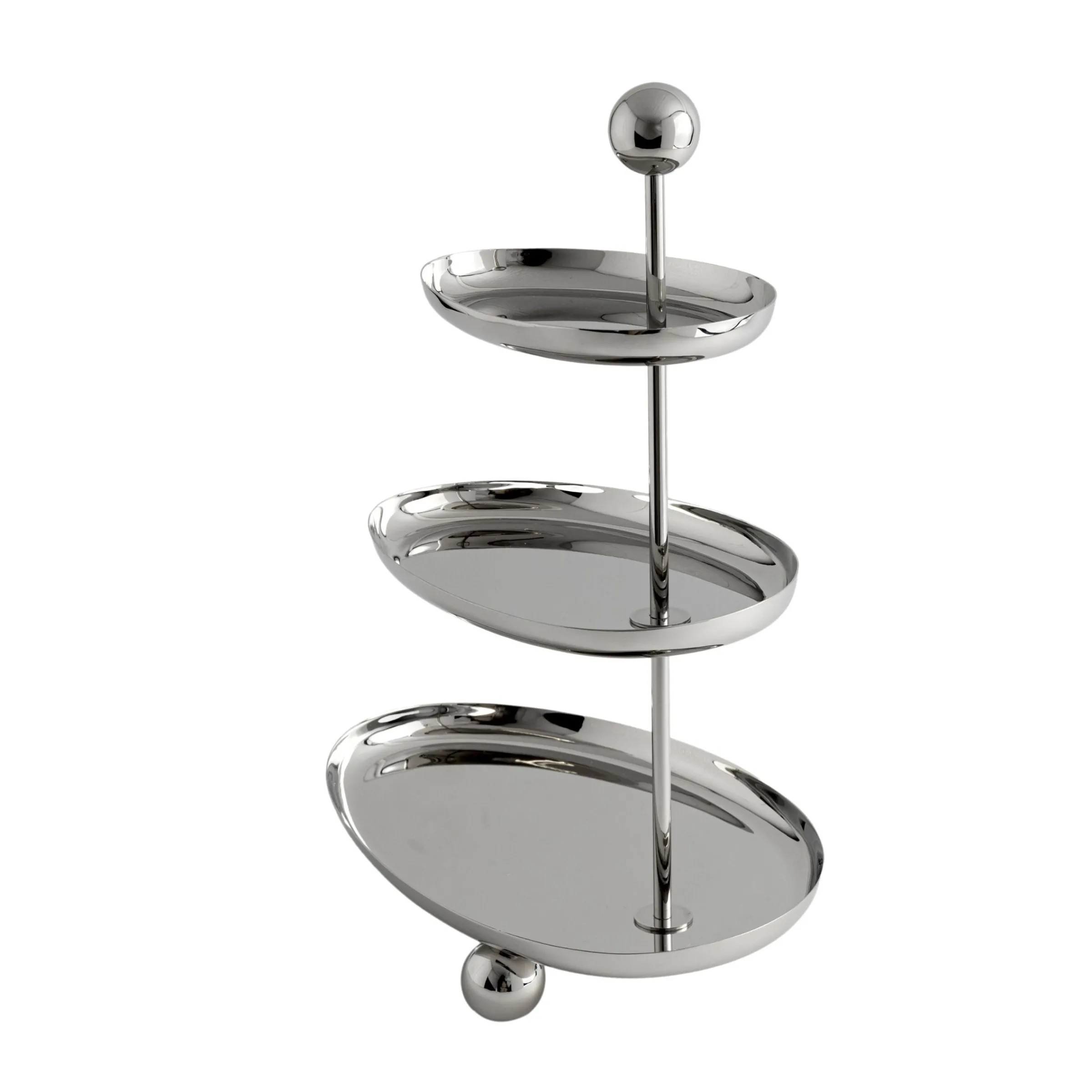 Elevate your entertaining with the Ellipse 3-Tiered Serving Stand. Handmade from mirrored stainless steel, this elegant stand features oblong tiers and a sleek, modern, clean design that adds contemporary style to any table. Perfect for serving desserts, appetizers, or small bites, it combines durability with sophistication. Ideal for everyday use, special occasions, or festive gatherings, the Ellipse stand is a stylish centerpiece for any setting.