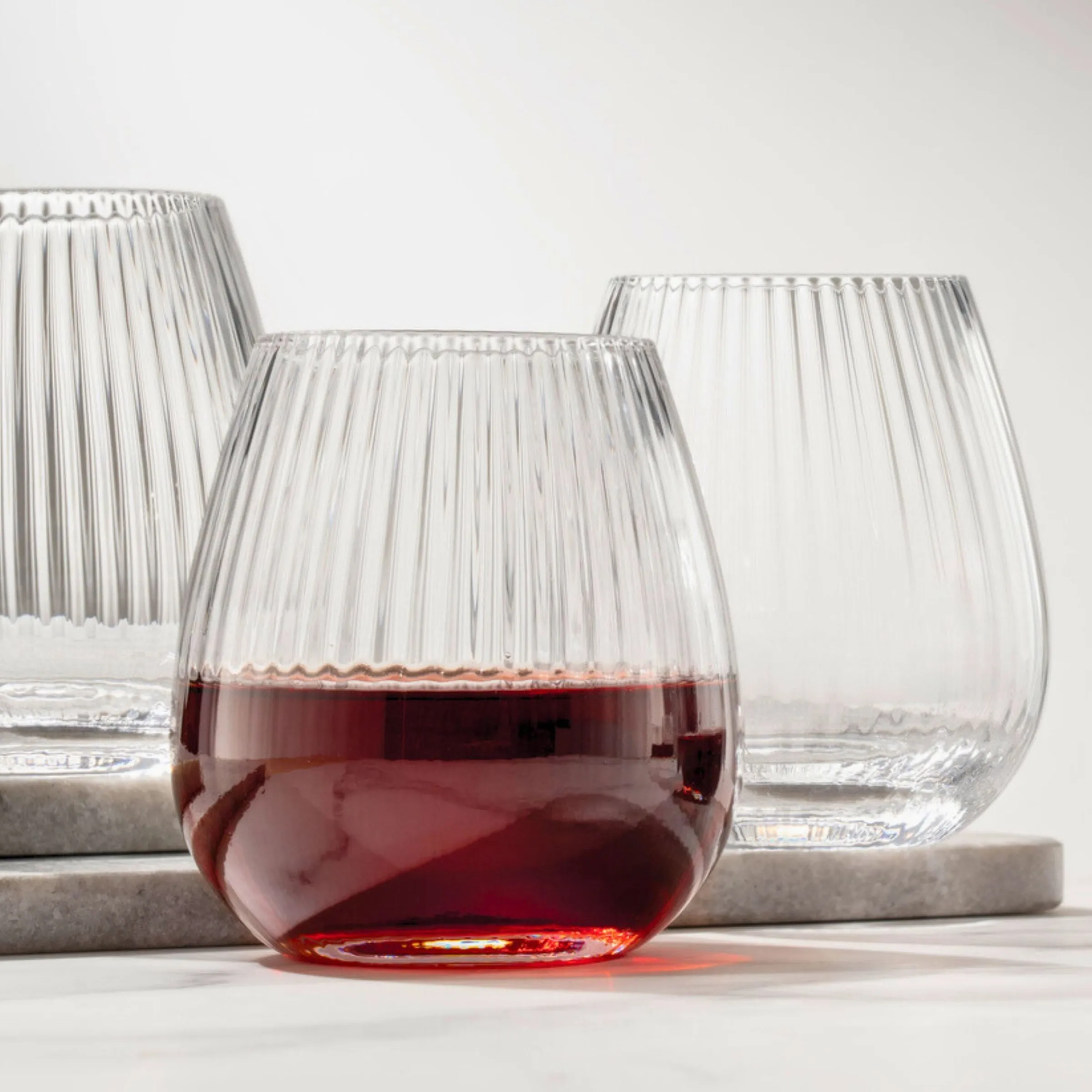 The Divo collection offers finely crafted glassware, featuring ribbed vertical bands and a modern design. An ideal addition for a social event or enhancing the sophistication of your table, these glasses are fashioned from lead-free crystal and showcase a faceted design that artfully captures and reflects light.