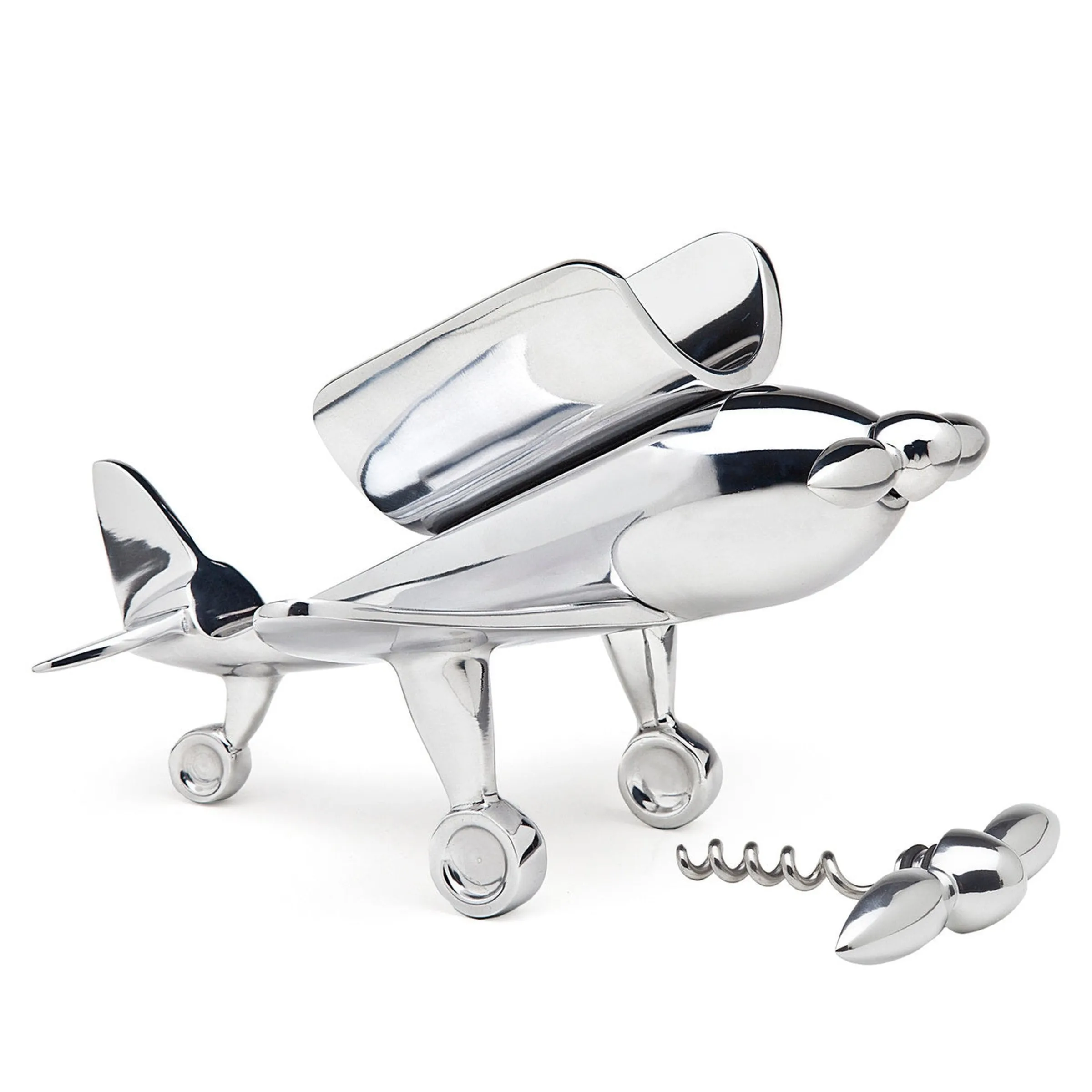 This stainless-steel airplane-shaped bottle holder boasts a covertly tucked away corkscrew, revealed when its propeller is detached. This is an ideal piece for the wine connoisseur with an eye for the creative, making a lasting impression on any occasion.