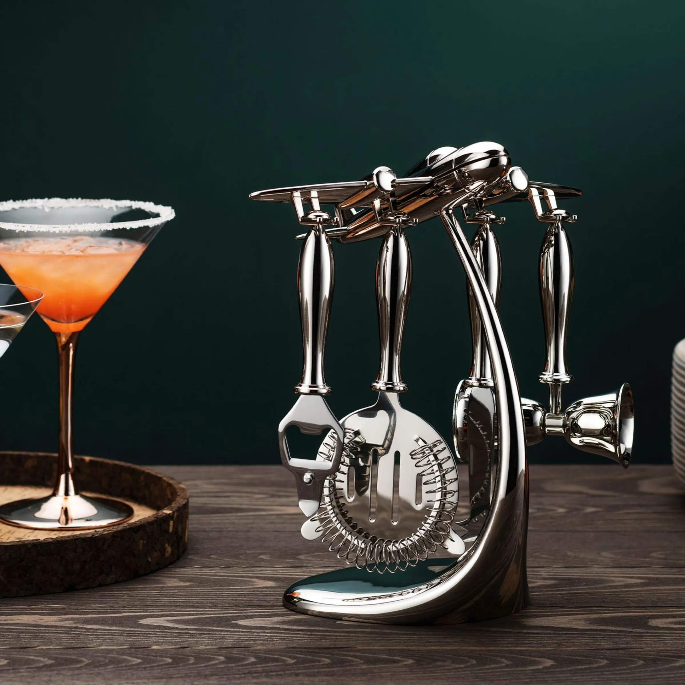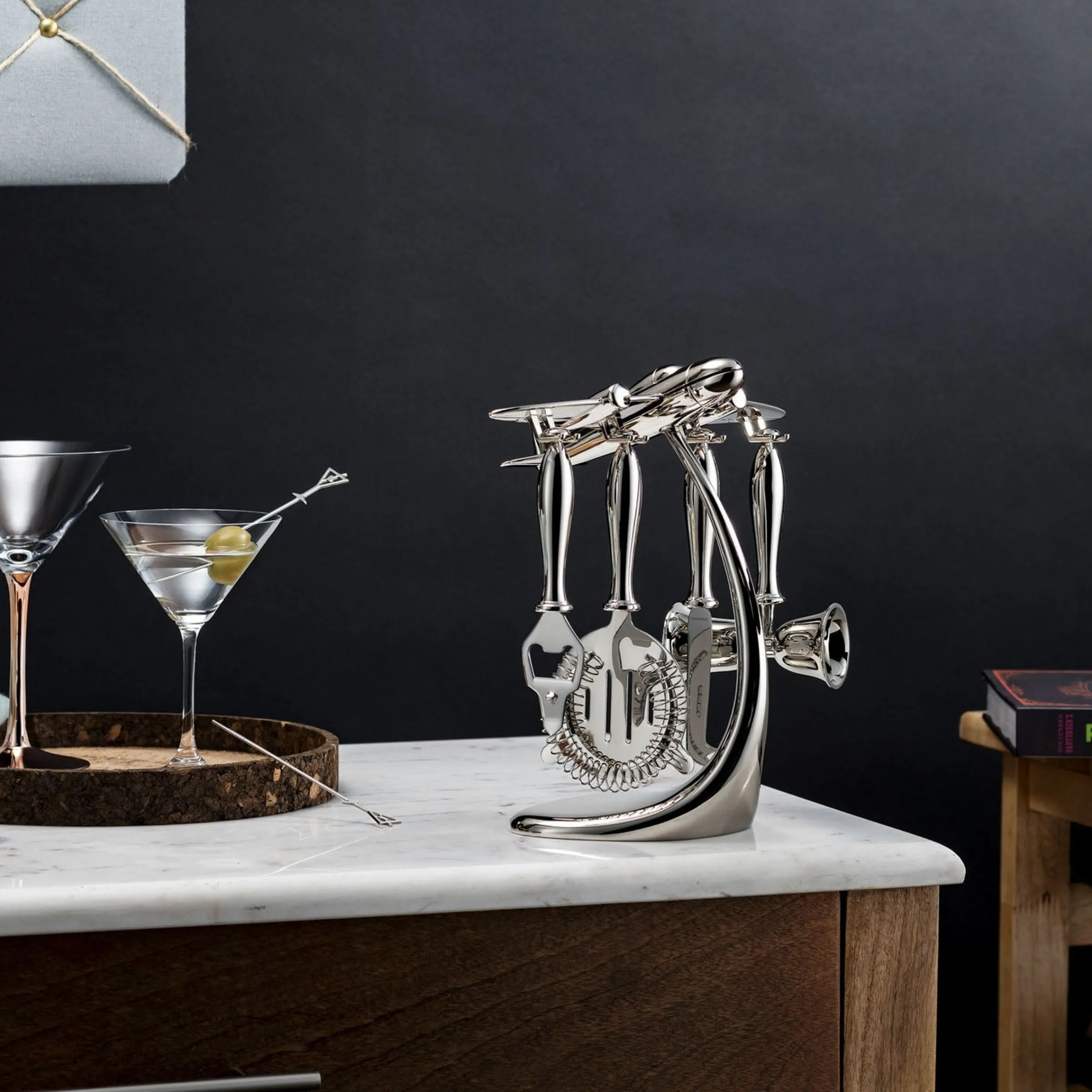 This exquisite 5-piece bar set allows you to craft the ideal libation with its sleek, aeronautical-style tools. Making for a sophisticated addition to your domicile’s bar, elevate your collection with this effortless set of professional quality bar accessories.