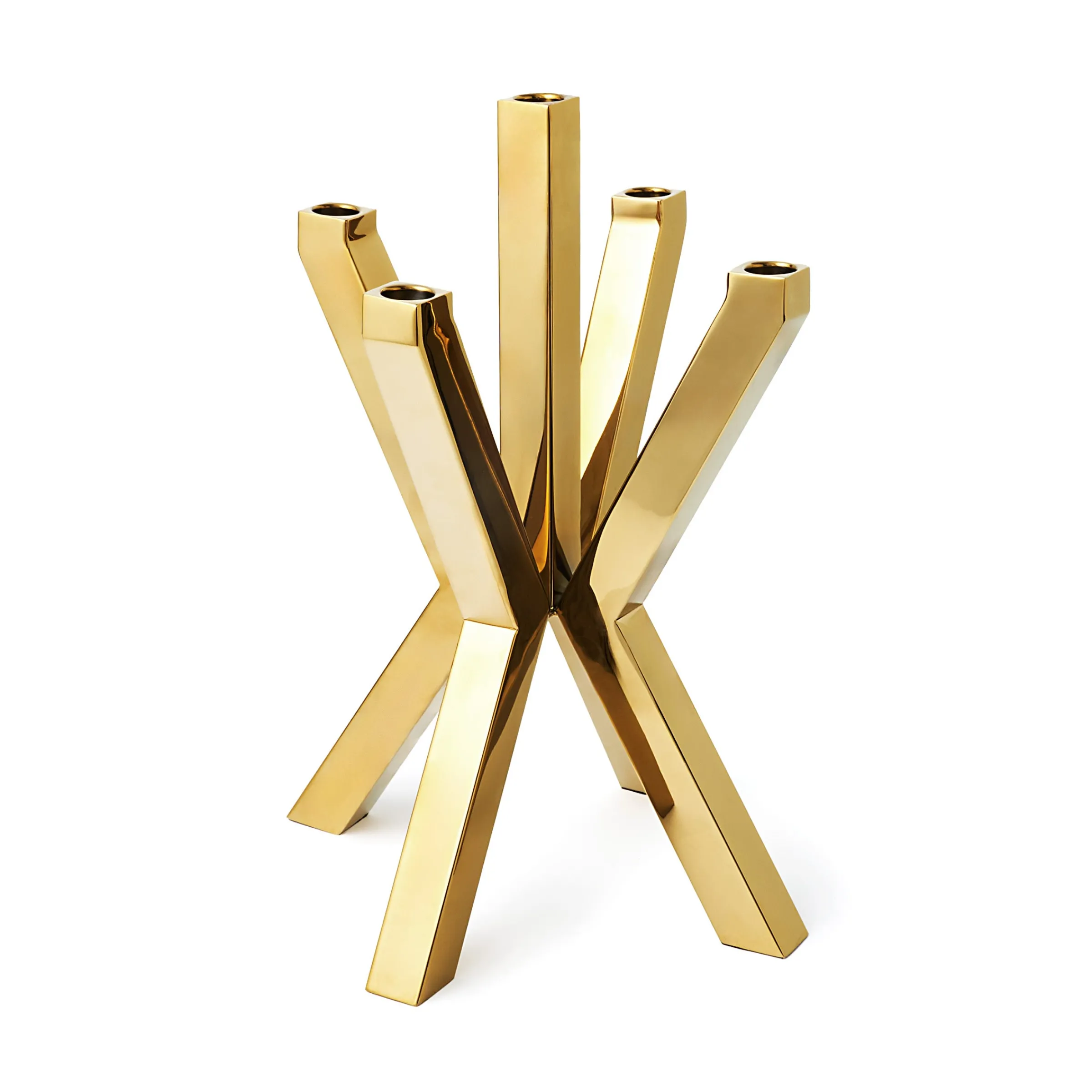 Make a bold statement with this striking 5-light candelabra, expertly crafted from sleek stainless steel in a unique X-shaped design. A contemporary take on classic candlelight, this piece blends clean lines with sculptural form to create a stunning centerpiece for dining tables, mantels, or special occasions.