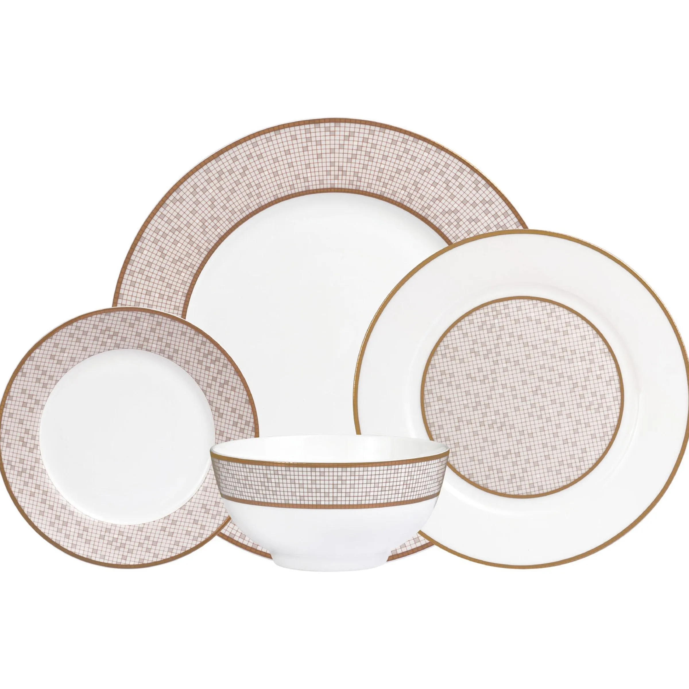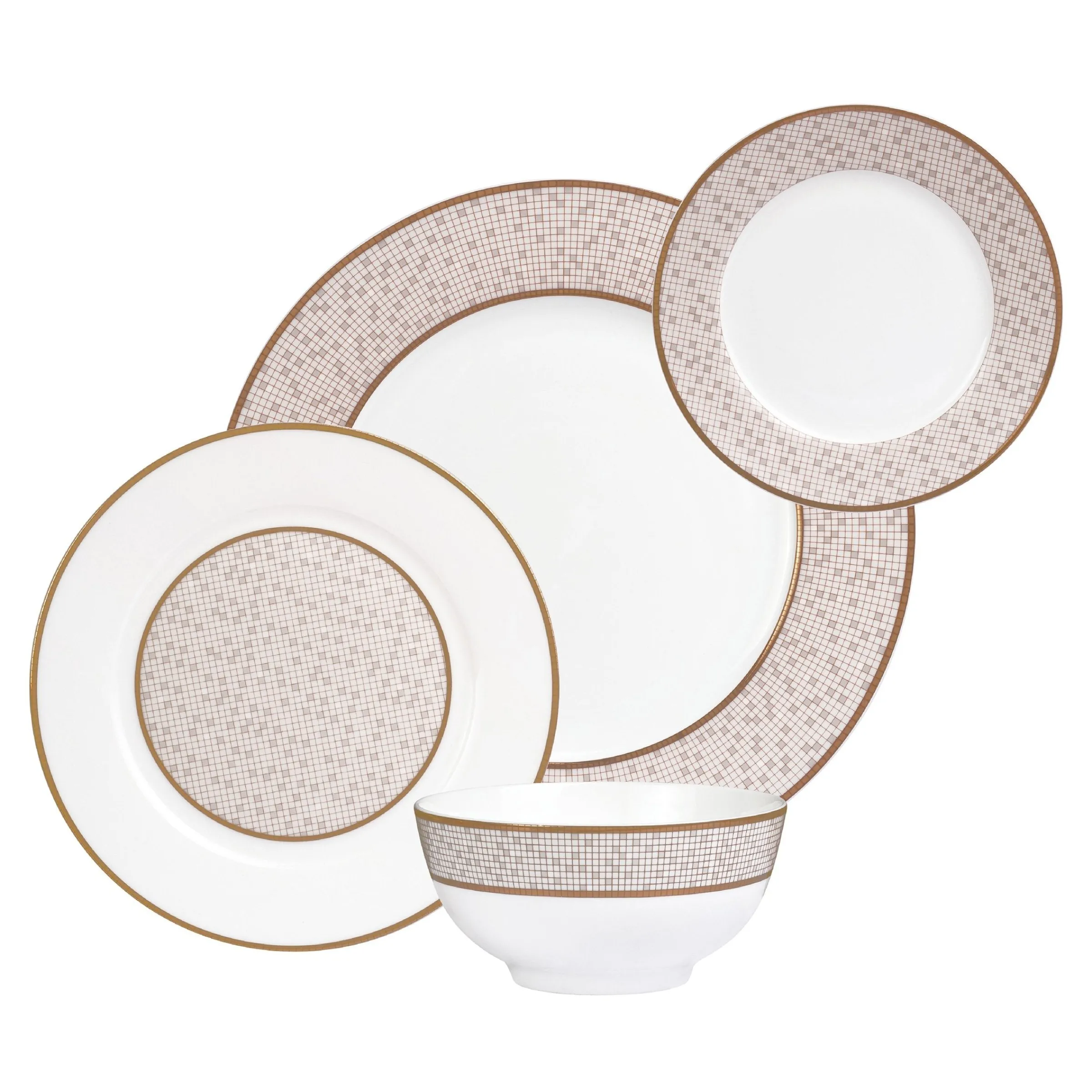 Endowed with antiquated golden bands and distinctively designed with a mosaic tile pattern, the dinnerware set promises opulence. A timeless blend of luxury and sophistication, this dinnerware set is the perfect way to bring a hint of magnificence into your dining experience.