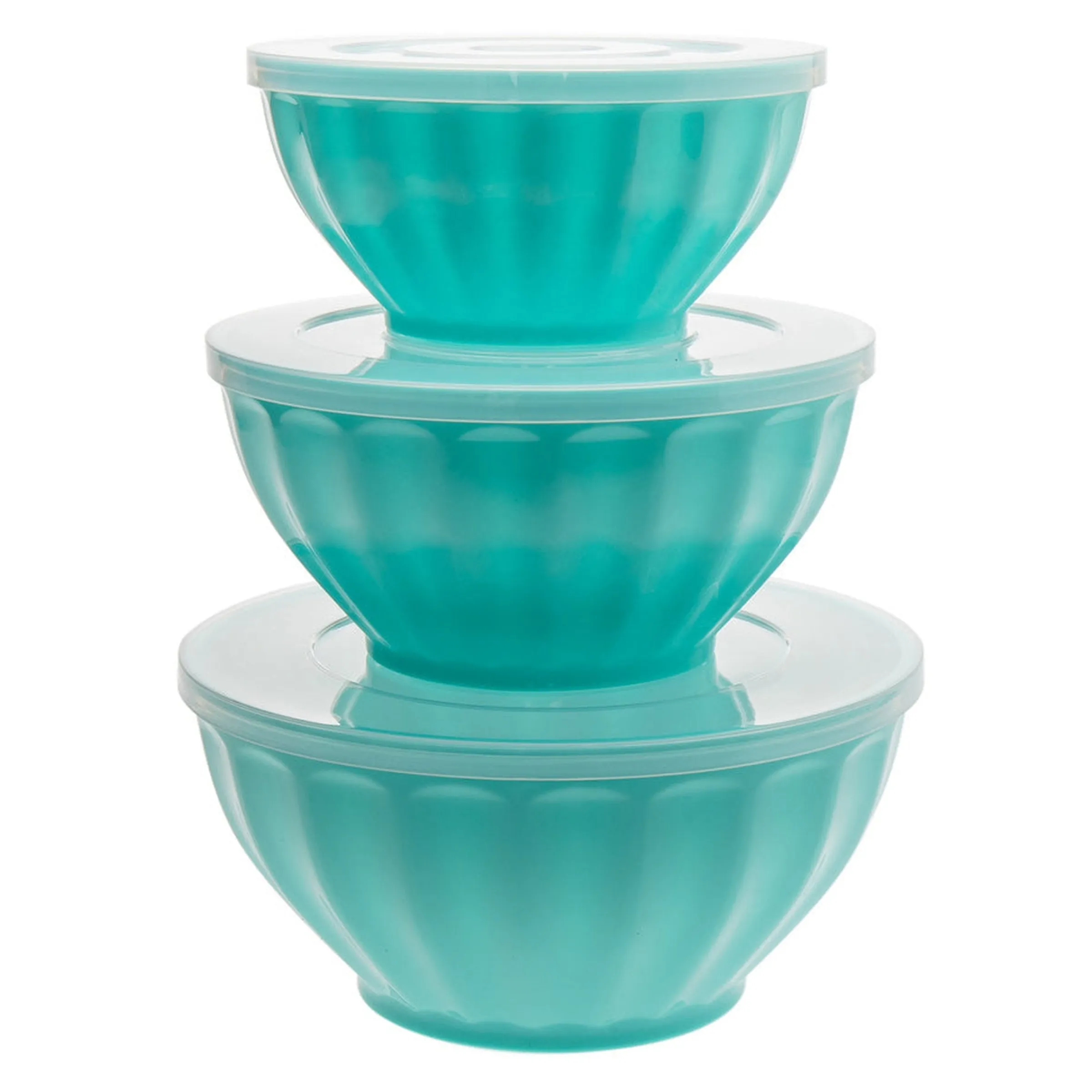 Enjoy your meals with complete peace of mind, knowing that this set of three fluted storage bowls is BPA-free, freezer-safe, and microwave-safe. In beautiful bright colors, this set of three fluted storage bowls is as stylish as practical.