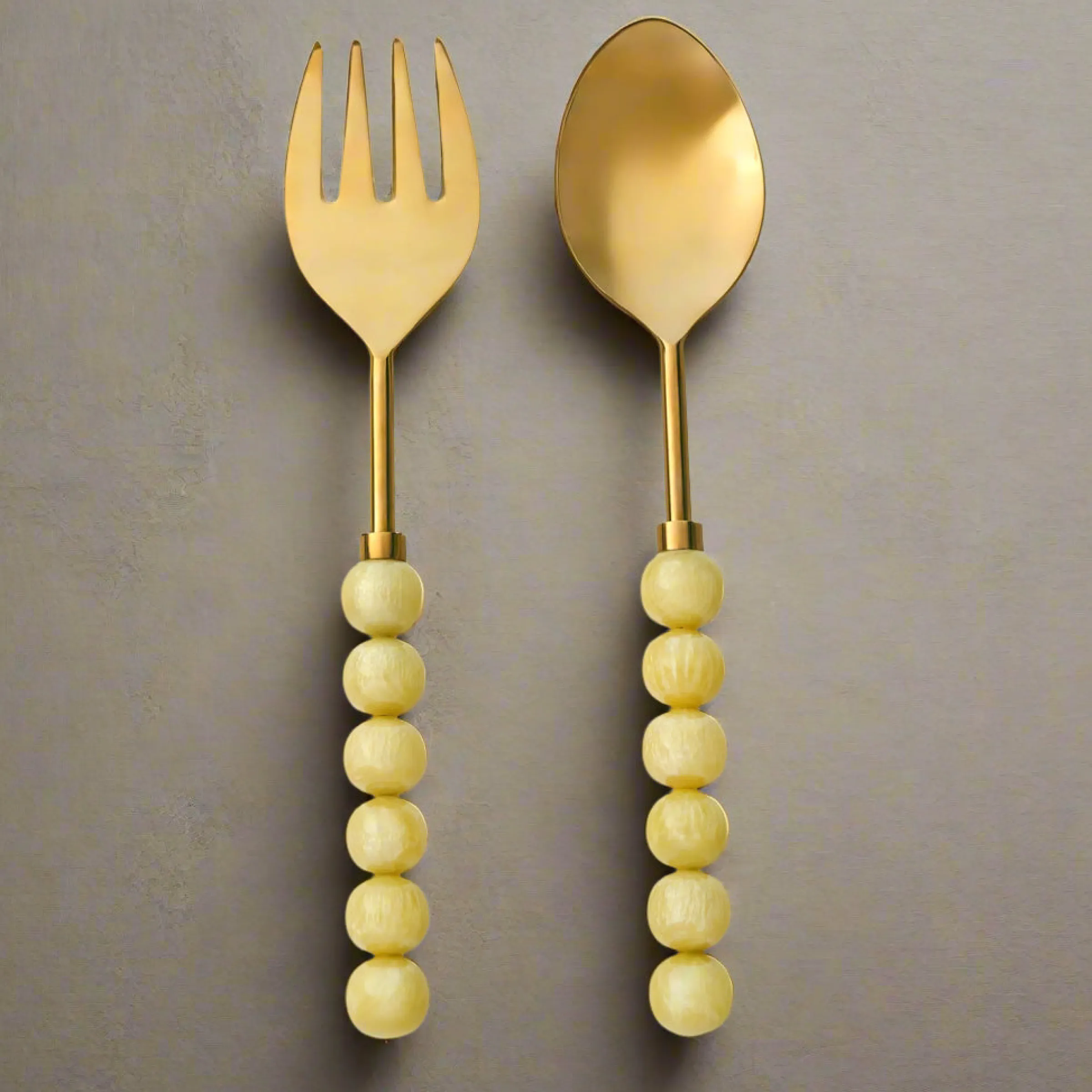 Elevate your style with these salad servers adorned with resin spheres. They add a modern touch to your dining experience and are perfect for both indoor and outdoor use.