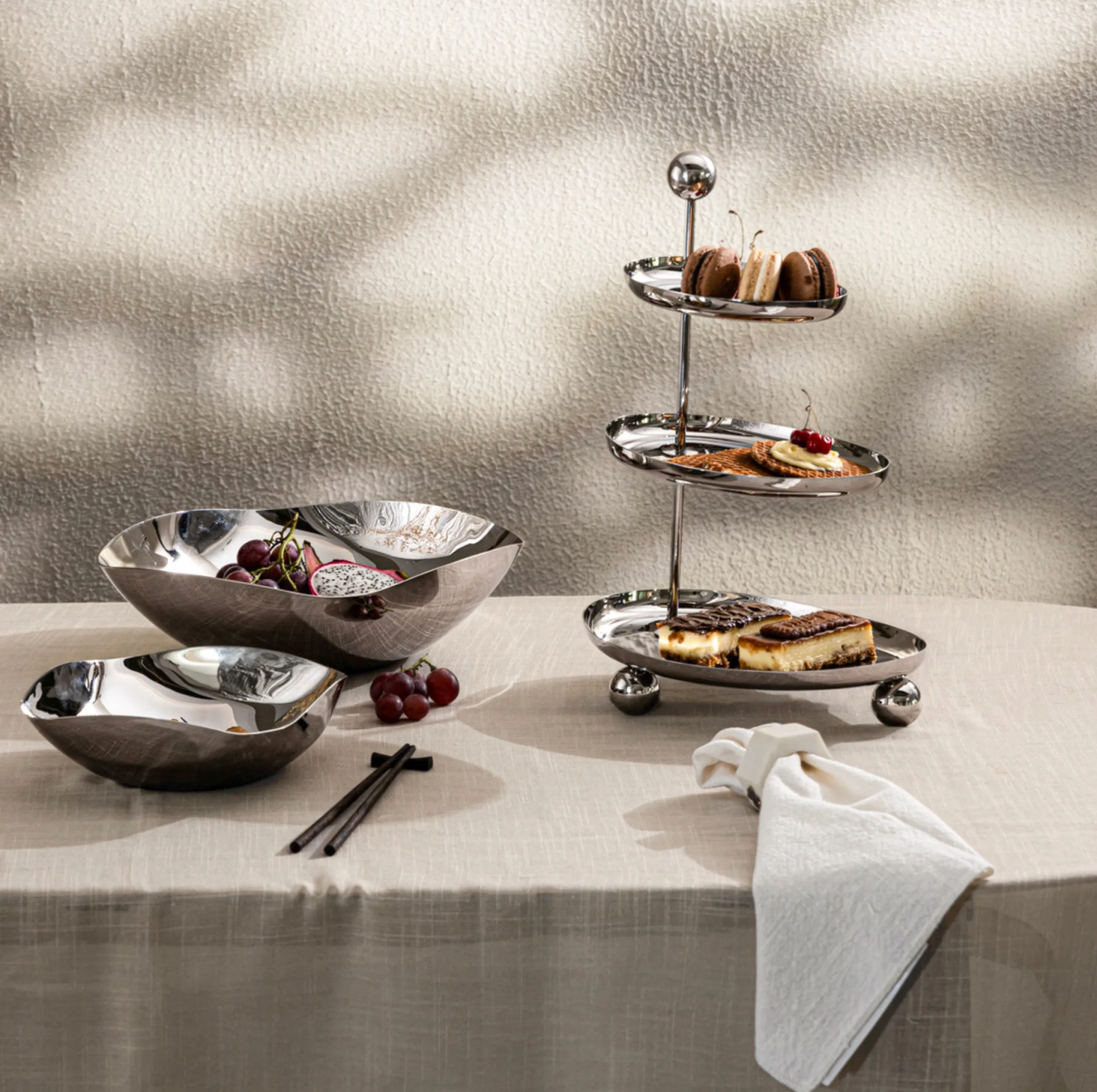 The Auburn Square Serving Bowl combines modern design with timeless craftsmanship. Handcrafted from stainless steel, its organic square shape creates a striking silhouette that elevates any table. With a polished finish and versatile size, it’s perfect for serving salads, pastas, or side dishes while adding a touch of contemporary elegance to everyday dining and special occasions alike.