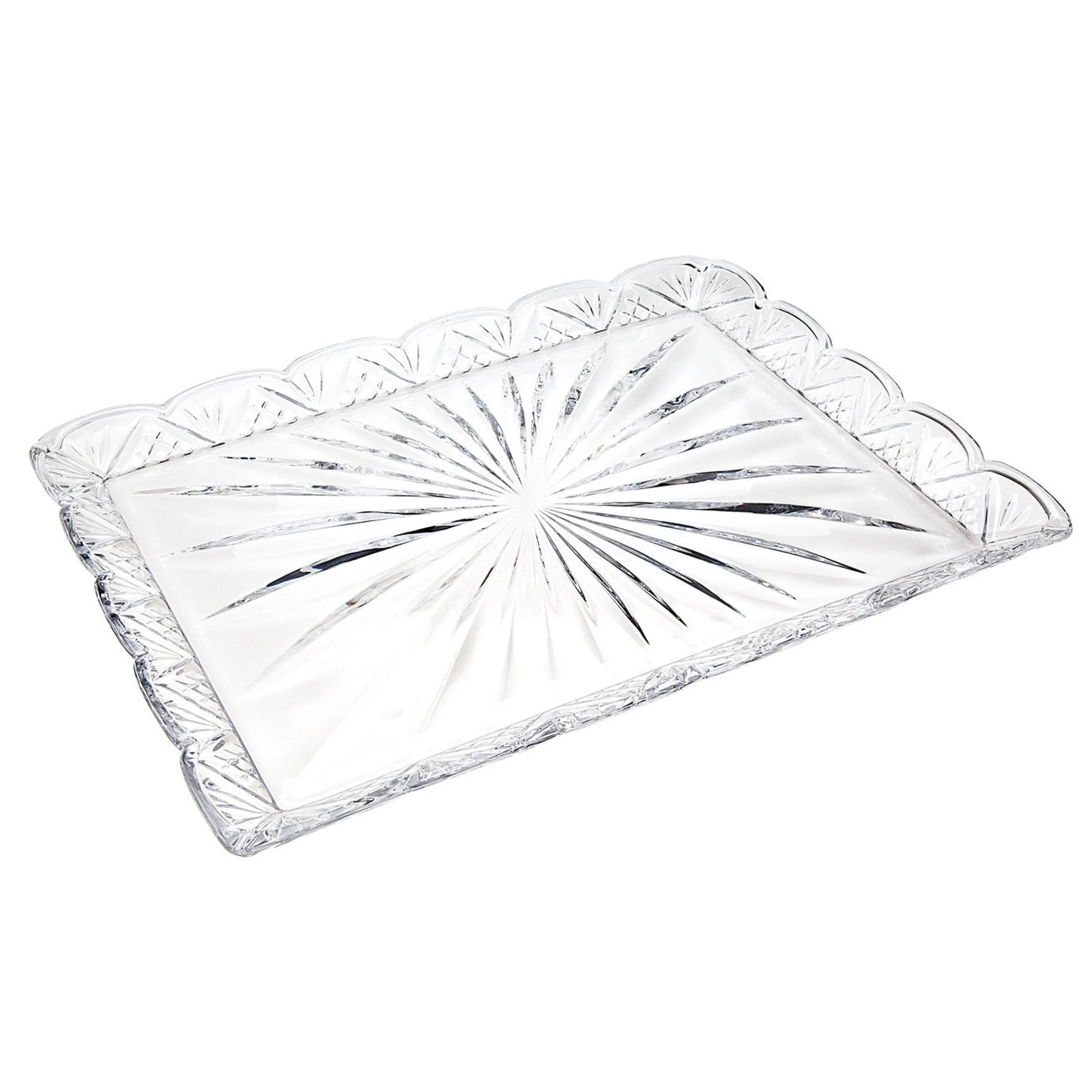Celebrate timeless craftsmanship with the Dublin Crystal Scalloped Large Serving Tray. Featuring the collection’s signature brilliant-cut pattern and elegantly scalloped edges, this generously sized tray is designed to impress. Perfect for serving everything from hors d’oeuvres to desserts, it brings a touch of refined sparkle to any table. Both functional and decorative, it’s a stunning addition to your entertaining essentials or home décor.