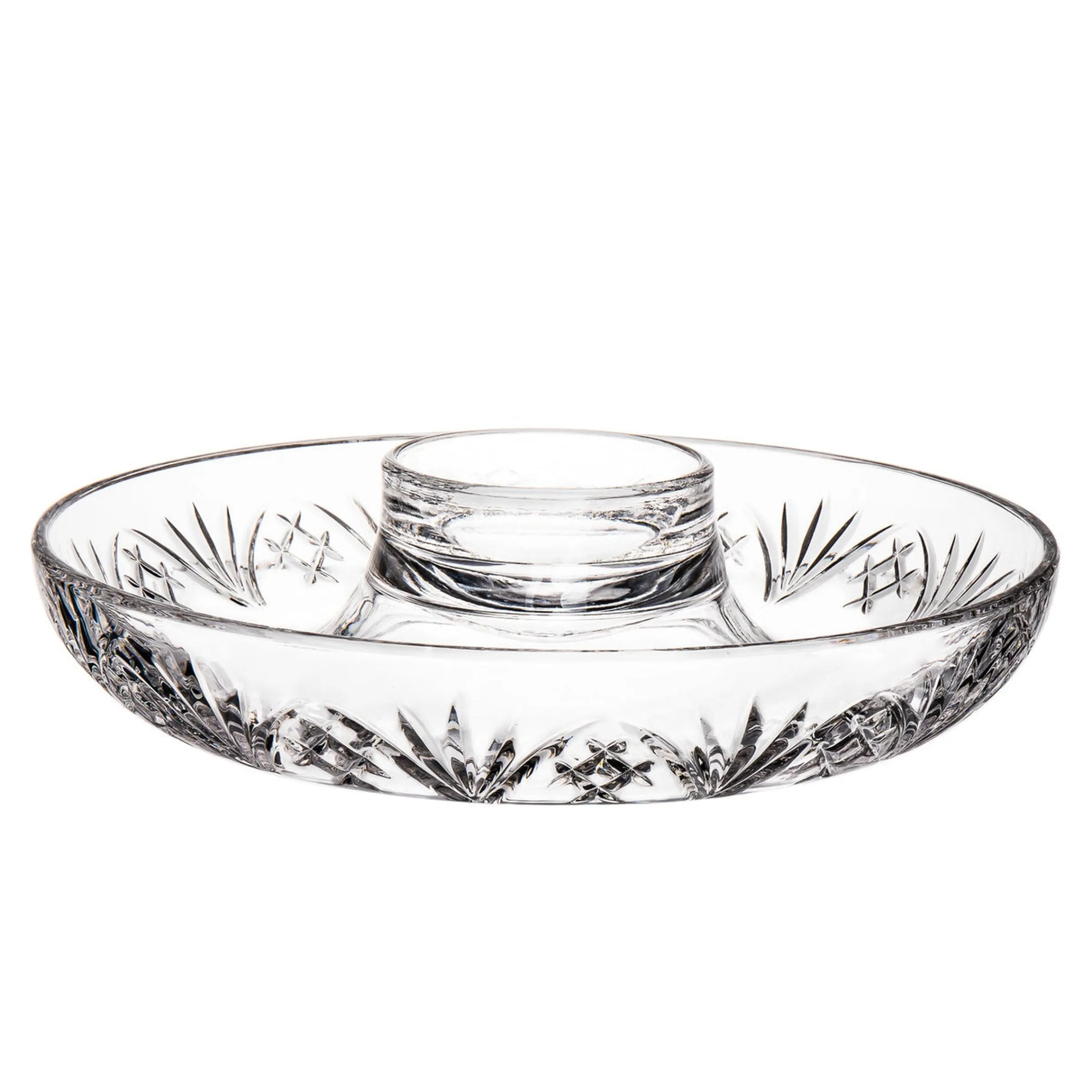 Our Dublin collection is a celebration of the long history of crystal-cut glass. The elegance paired with a brilliant-cut pattern creates timeless pieces in design and refined additions to your home. This beautifully crafted crystal server features a spacious design for chips or veggies and a central well for your favorite dips, making it perfect for entertaining. A classic piece that brings both function and elegance to any gathering.