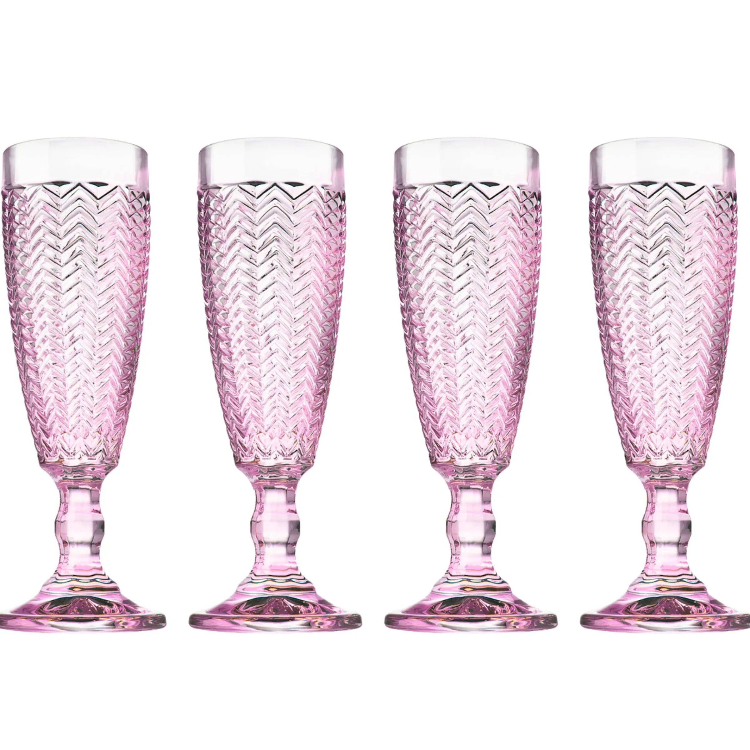 Enhance your dining experience with our exquisite Twill Flute set. Each goblet features a sophisticated chevron pattern and raised detailing, adding an elegant touch to your table. Indulge in the finer things in life with these intricately designed flutes.